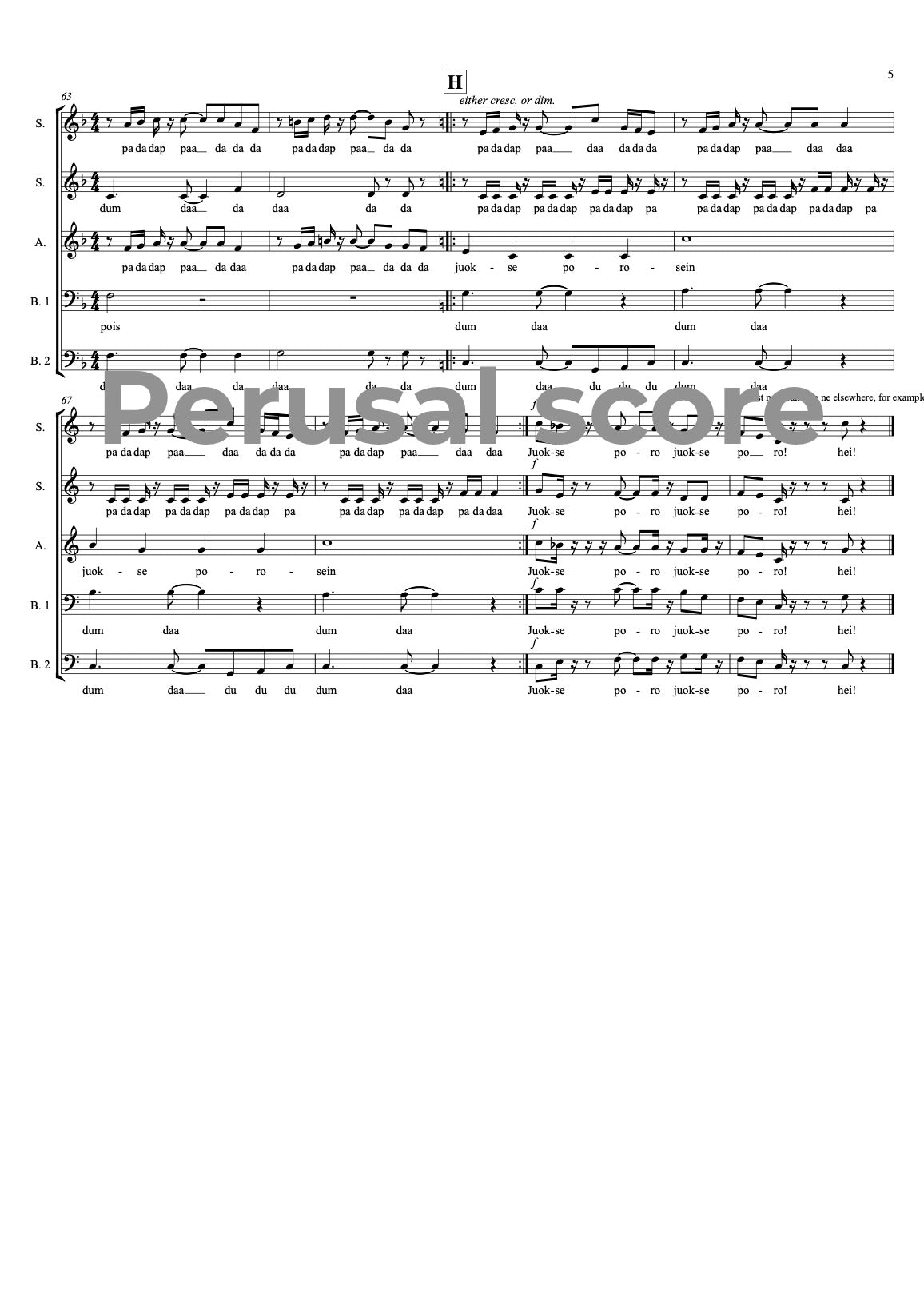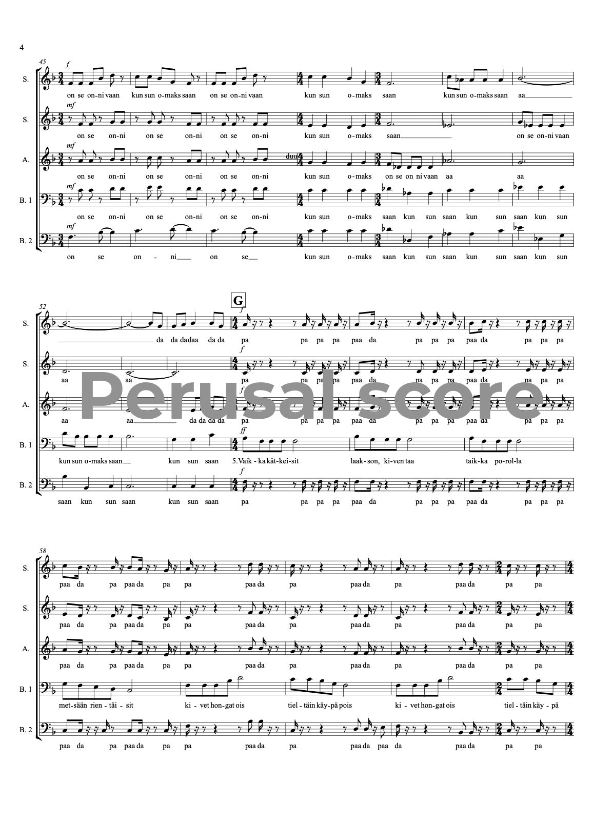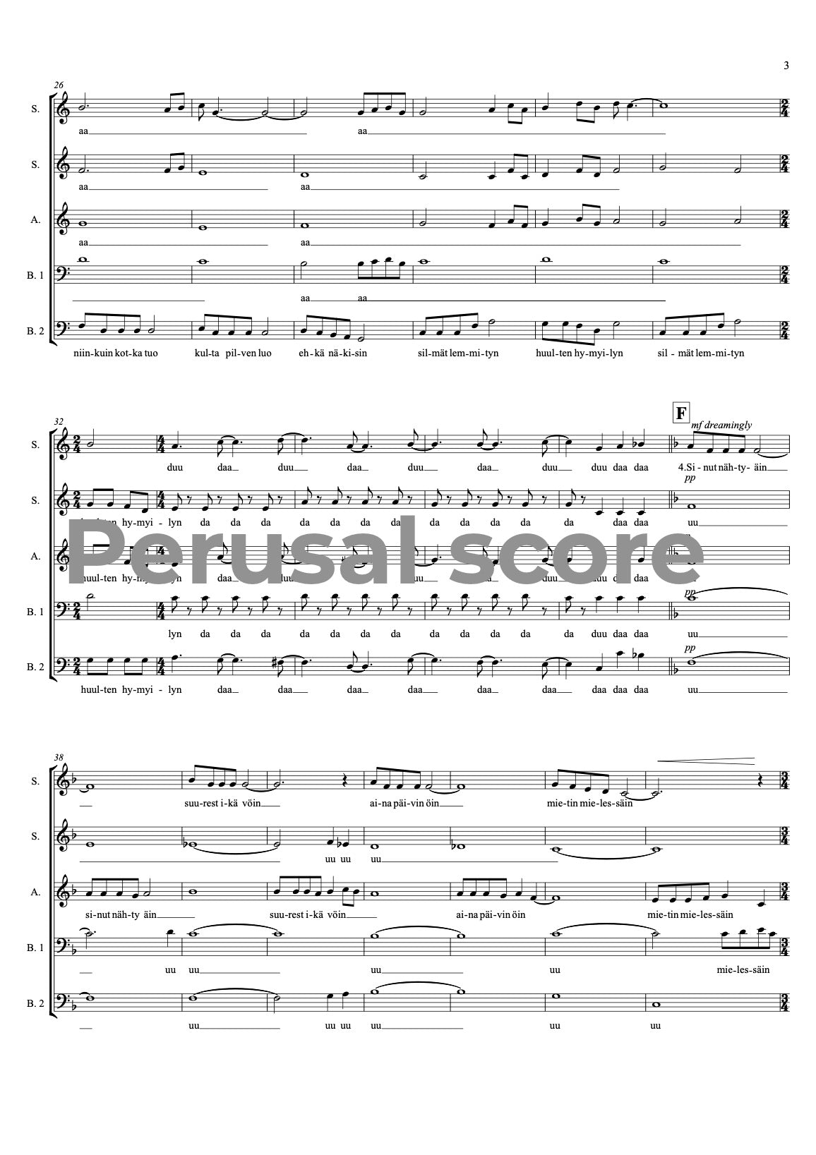 Finnish traditional folksong arranged for mixed choir or ensemble a capella.