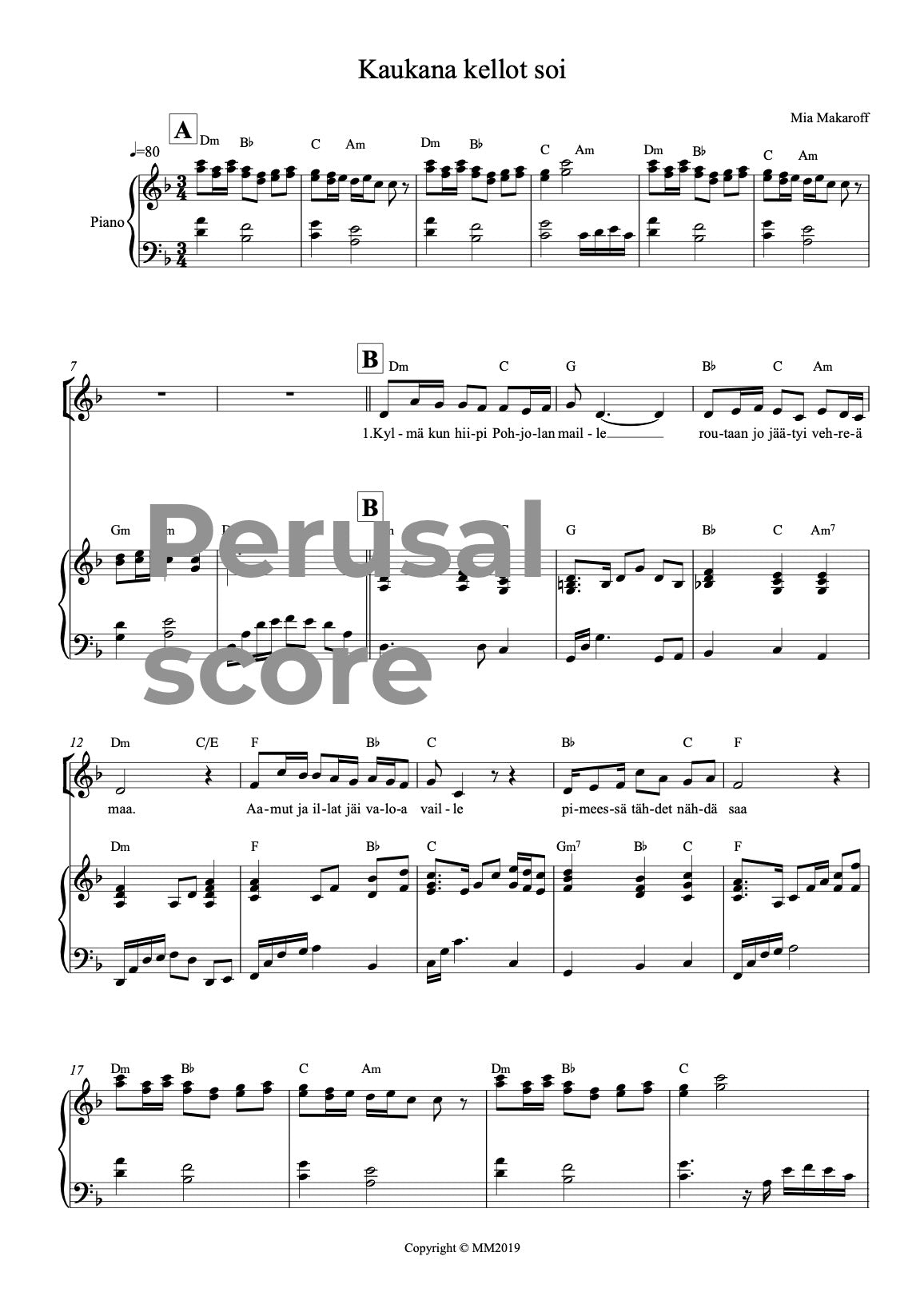 "Kaukana kellot soi" is a winter song, originally composed for the childen and youth choir Ocarina. This song has a piano accompaniment.