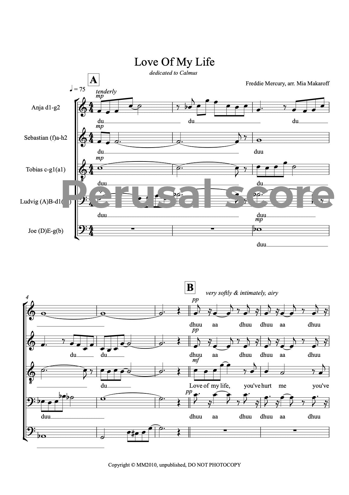 A pop arrangement a cappella of Freddie Mercury's beautiful song, originally written for Calmus Ensemble.