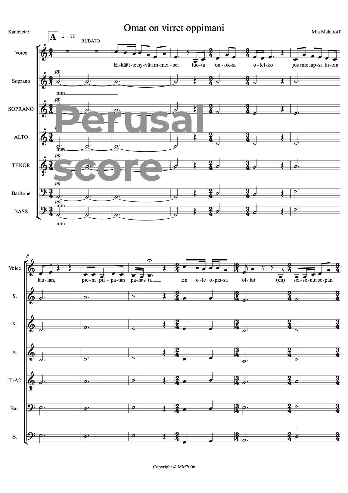 Omat on virret oppimani -runo on Kantelettaresta, mistäpäs muualtakaan! Tätä laulua on laulanut kovasti varsinkin Sibelius-lukion kamarikuoro, kiitokset siitä! Sovitus on SSAATBB-muodossa.