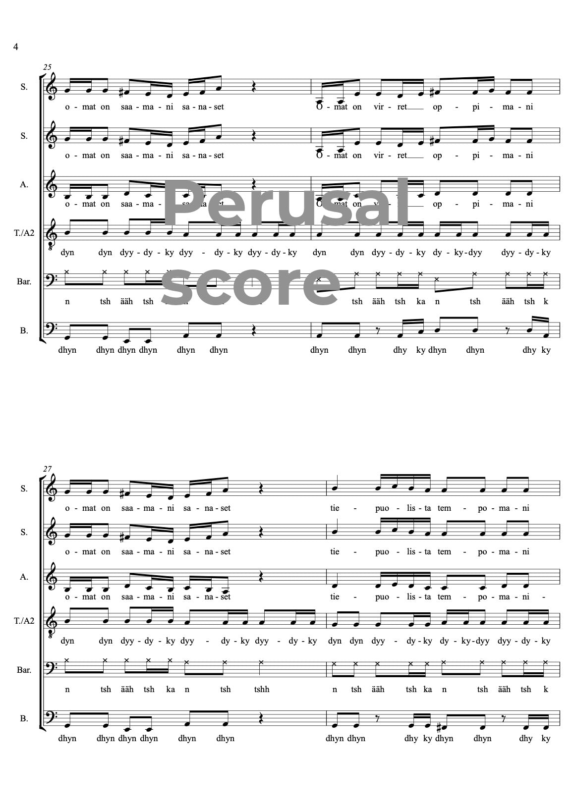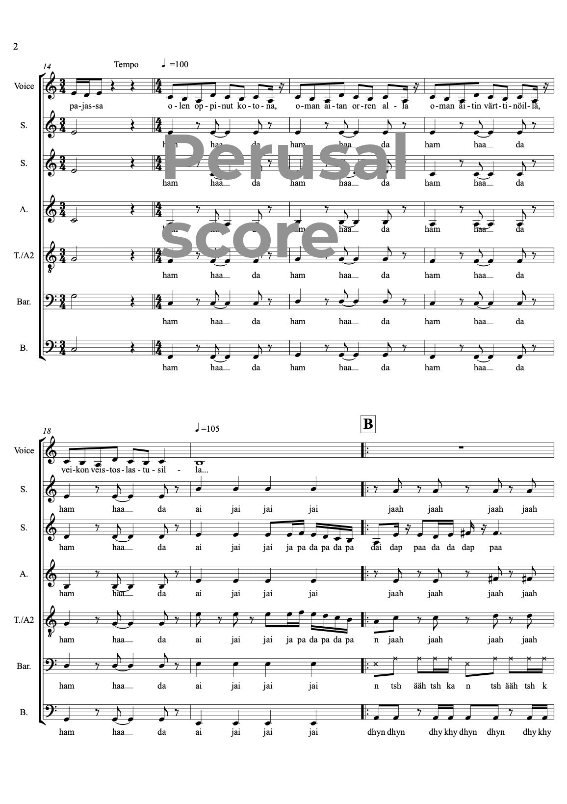 A folksong-style original composition for mixed choirs, text from Kanteletar.