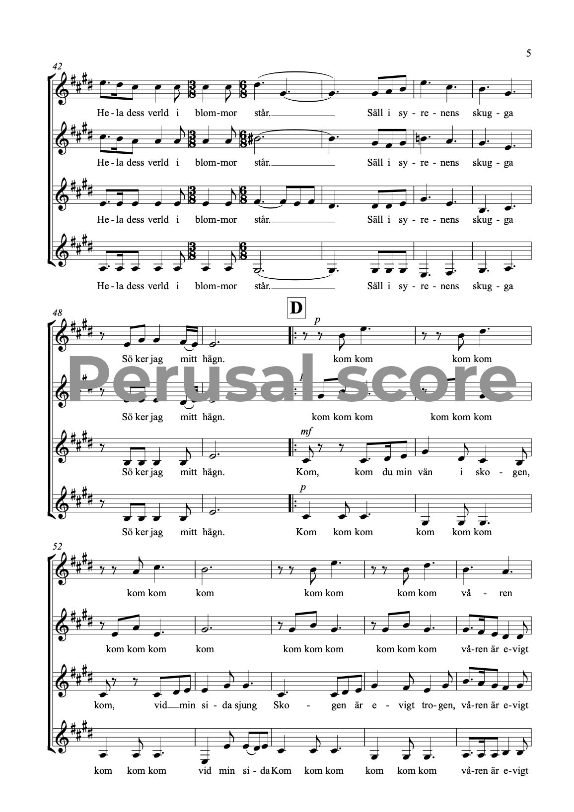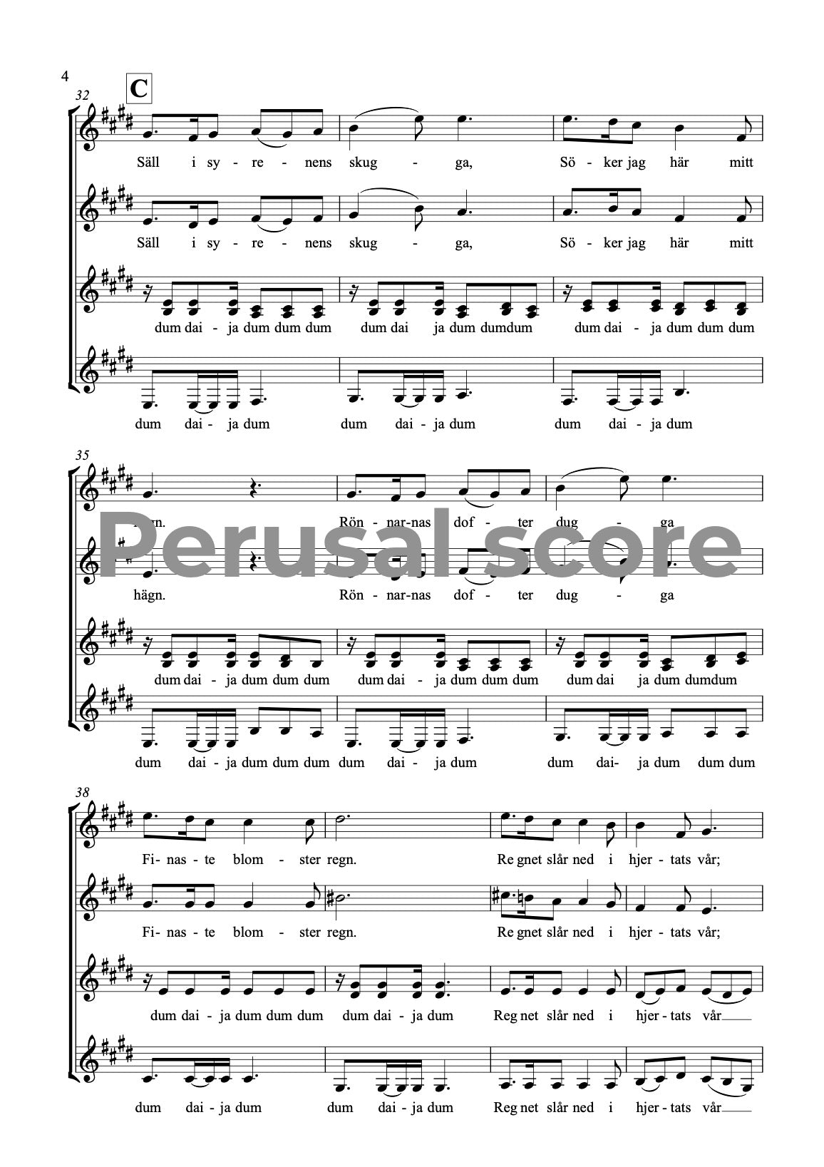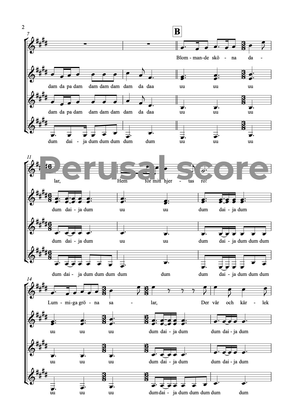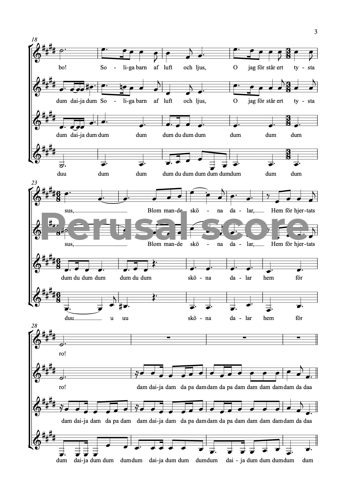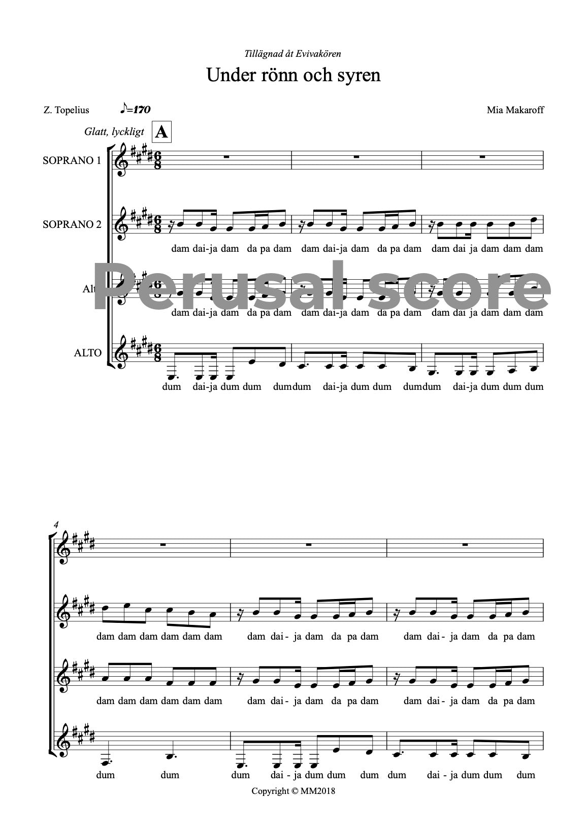This song is composed originally for the female choir "Eviva" to a poem by Zacharias Topelius. It is also published in a collection for female voices "Damernas lilla svarta".